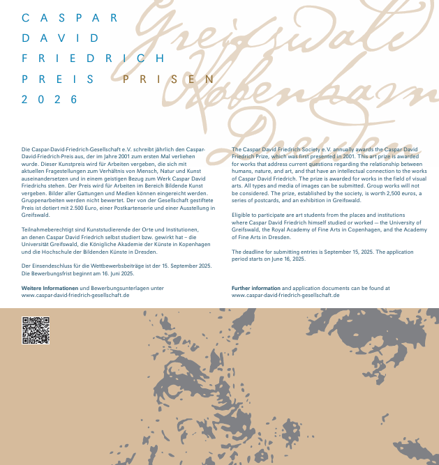 Herzlich willkommen bei der Caspar-David-Friedrich-Gesellschaft in Greifswald. Vielen Dank für Ihr Interesse an unserer Arbeit.