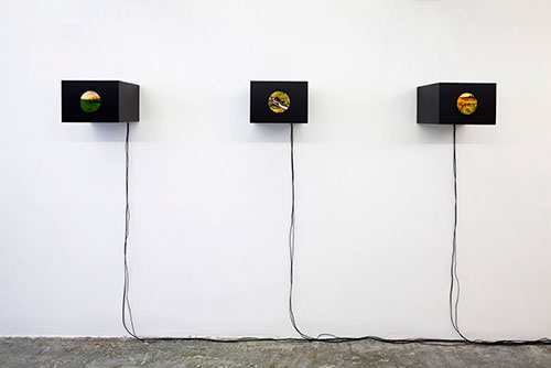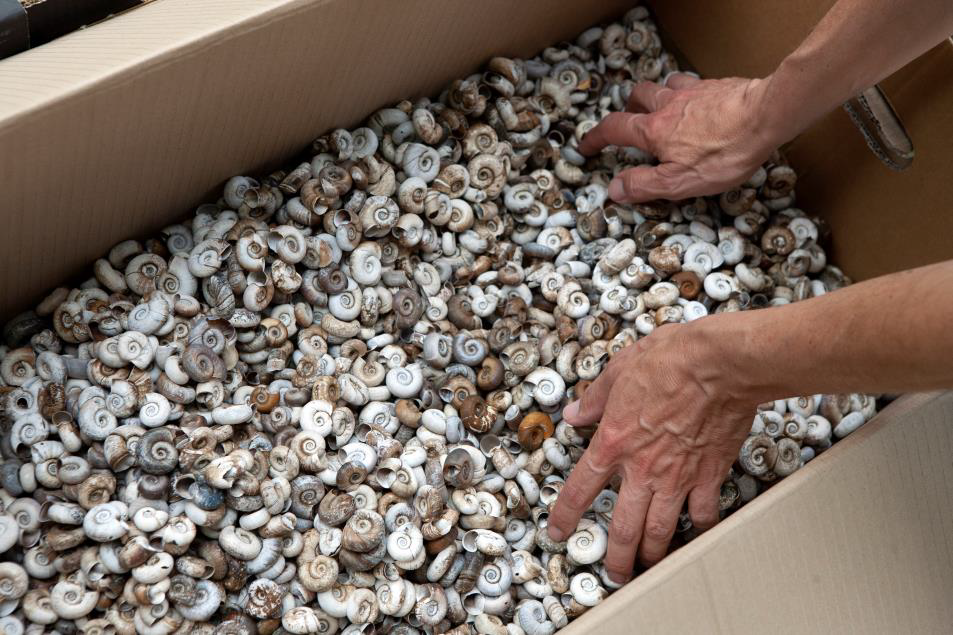 Gerahmt durch duftende Guckkästen mit Sound, Fotografien und Malereien werden Vogelfedern, Würmer und Falter neben Skulpturen aus Naturstein und algengefüllten PET-Flaschen konzeptionell zu Hauptdarstellern.
